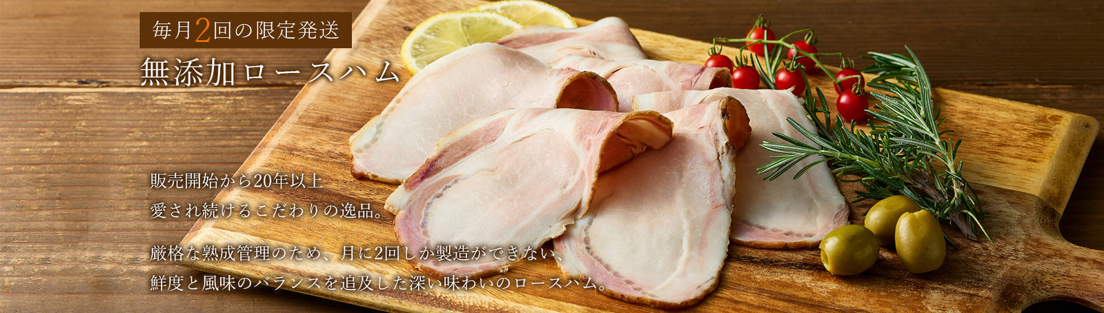 厳格な熟成管理のため、月に2回の製造しかできないさんだかんこだわりの逸品。厳選した北海道産豚ロースを使い、鮮度と風味のバランスが絶妙な深い味わいのロースハムです。