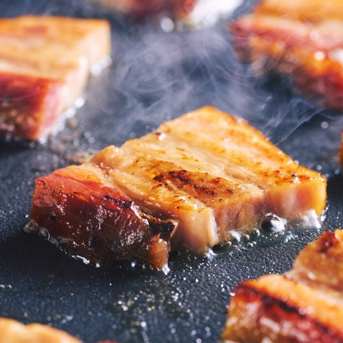 使用するのは、ミネラルを豊富に含む海藻を食べて育った、北海道産の厳選された三枚肉。さらに、北海道産の天然りんご蜂蜜と長崎の天日塩を使い、じっくりと熟成。素材の風味を最大限に引き出しています。