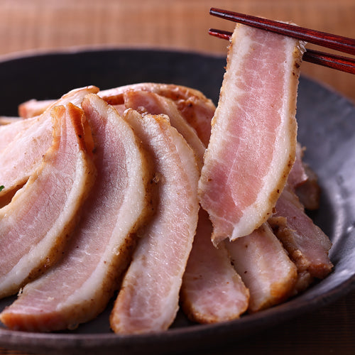 素材の良さを活かした、風味豊かな無添加トントロベーコン山椒味。ぜひ、そのこだわりの味わいをご堪能ください。