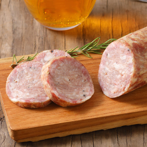 通常のソーセージよりも水分が少なめで、しっとりとした食感が特徴です。噛むたびに広がるジューシーな肉の旨味とピリッと効いた胡椒がアクセントとなり、あとを引く味わいです。