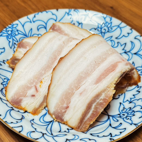 ブロックタイプのベーコンですので、薄くスライスして肉と脂の旨味をお酒と一緒にゆっくり味わってみてください。