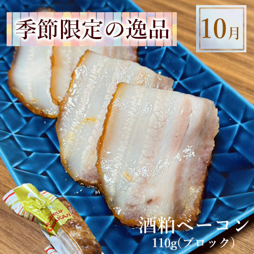 10月限定販売の季節の逸品は、無添加の酒粕ベーコンブロックです。