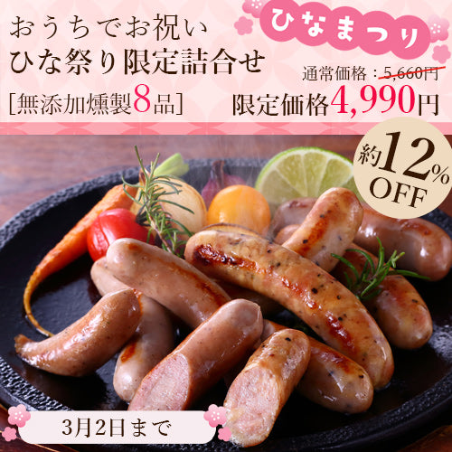 おうちで楽しむ!ひな祭りのお食事に、無添加燻製のソーセージはいかがでしょうか。