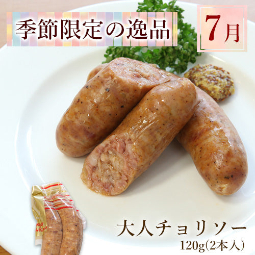 7月限定販売の季節の逸品は、無添加の大人のチョリソーです。